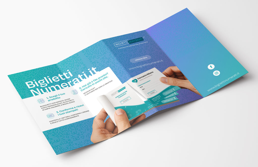 Volantini, pieghevoli e depliant personalizzati: perfetti per promozioni, aperture, eventi e distribuzione hand to hand.